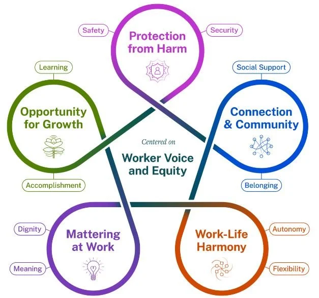 While there’s no question that a number of industries will be impacted by artificial intelligence, the human ability to influence, inspire, support, and motivate other people will remain paramount. In fact, a recent report from the US Surgeon General presented a framework (see image) for designing workplaces that support strong mental health and wellbeing. A key component of that framework emphasizes the importance of Connection and Community. Social Support is defined as “having the networks and relationships that can offer physical and psychological help, and can mitigate feelings of loneliness and isolation” while Belonging is defined as “the feeling of being an accepted member of a group”. This essential need to experience a bond with others is not limited to things we look for at home or in our commuties. We yearn for these connections at work as well. When we feel isolated in our professional roles, our overall sense of wellbeing begins to suffer.